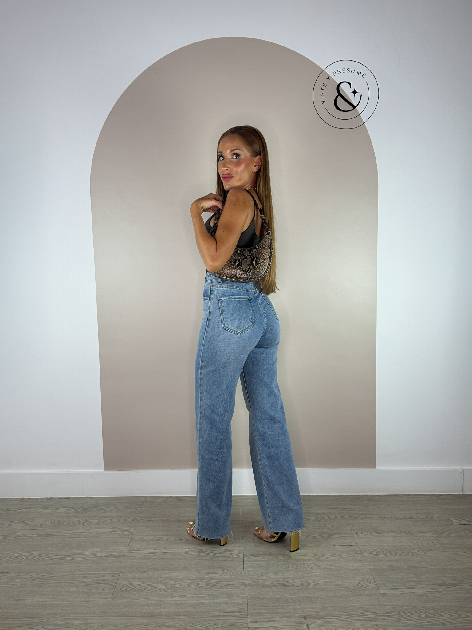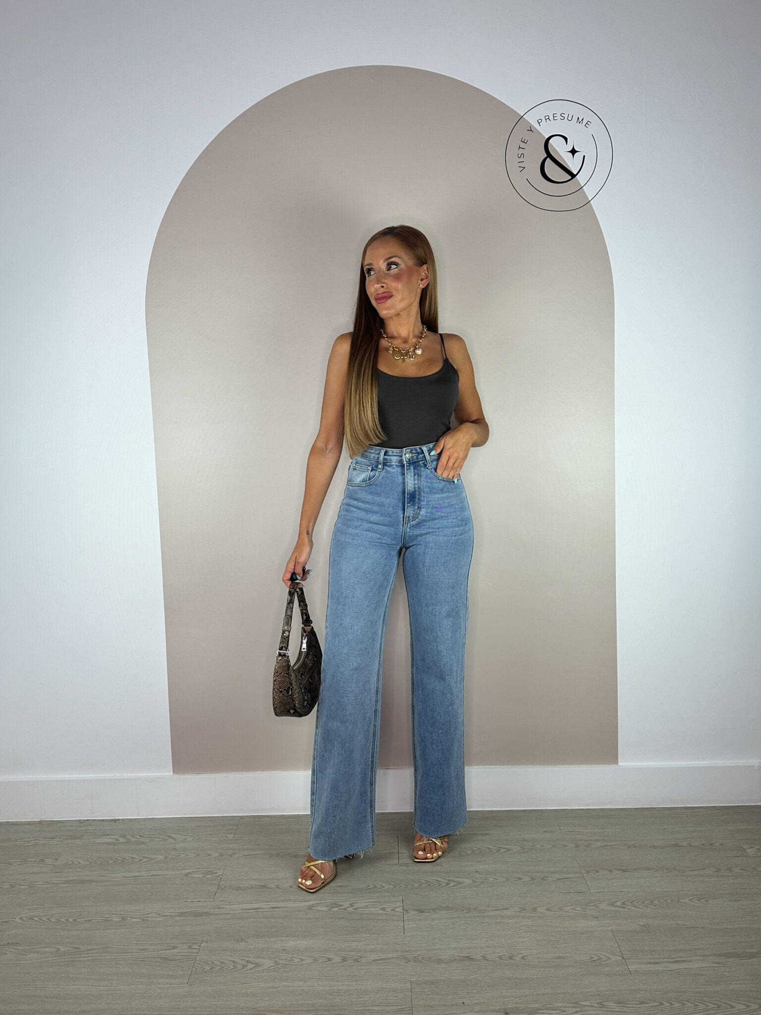 Jeans recto con acabado desflecado en el bajo. Diseño cómodo, versátil y fácil de combinar, perfecto para un look casual con estilo.