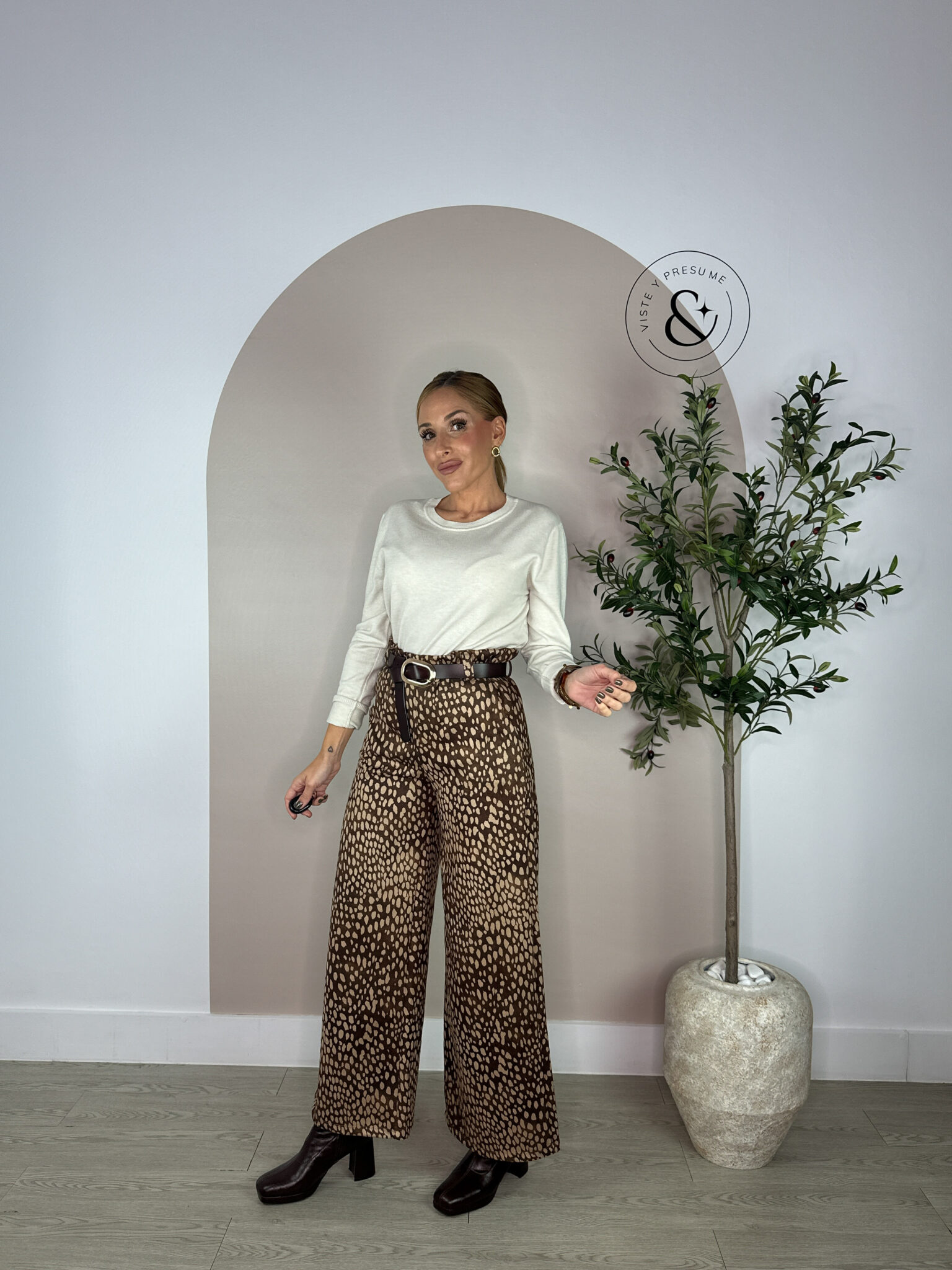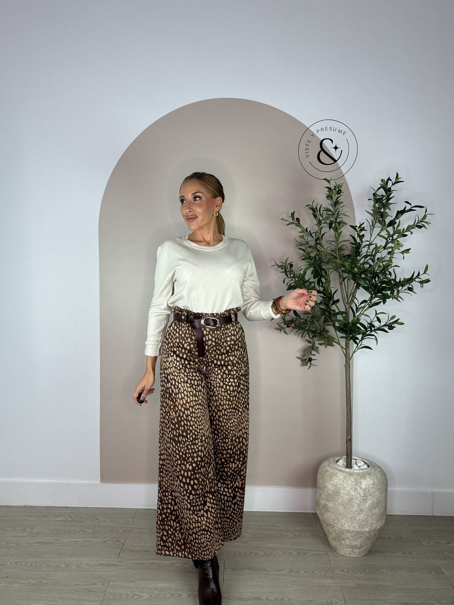 Pantalón animal print de jirafa, confeccionado en suave antelina. Incluye cinturón (diferente al de la foto). Es largo, muy cómodo y de talla única valorada en S, M y L.