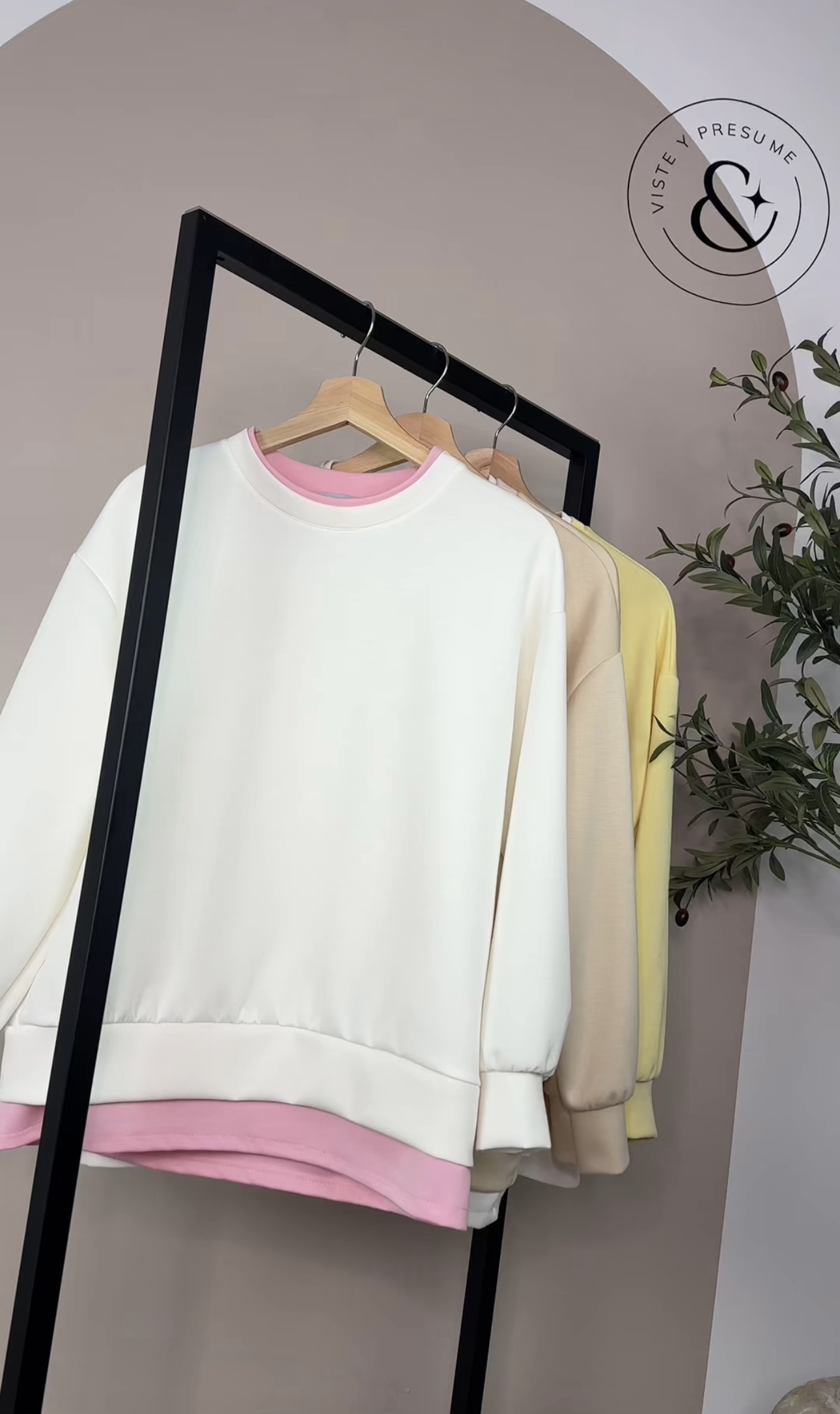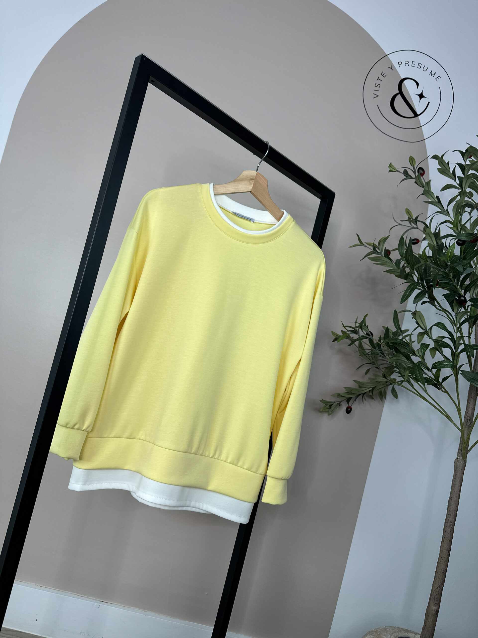 Sudadera casual disponible en color blanco, beige y amarillo. Muy cómoda y perfecta para el día a día. Talla única, valorada para S, M, L y XL (cuestión de probar). Un básico versátil y fácil de combinar.